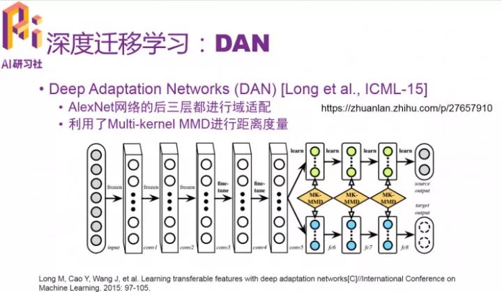 15年发表的DAN网络对AlexNet网络的后三层都进行了域适配,还利用了Multi-kernel MMD进行距离度量,这是核心的亮点贡献。