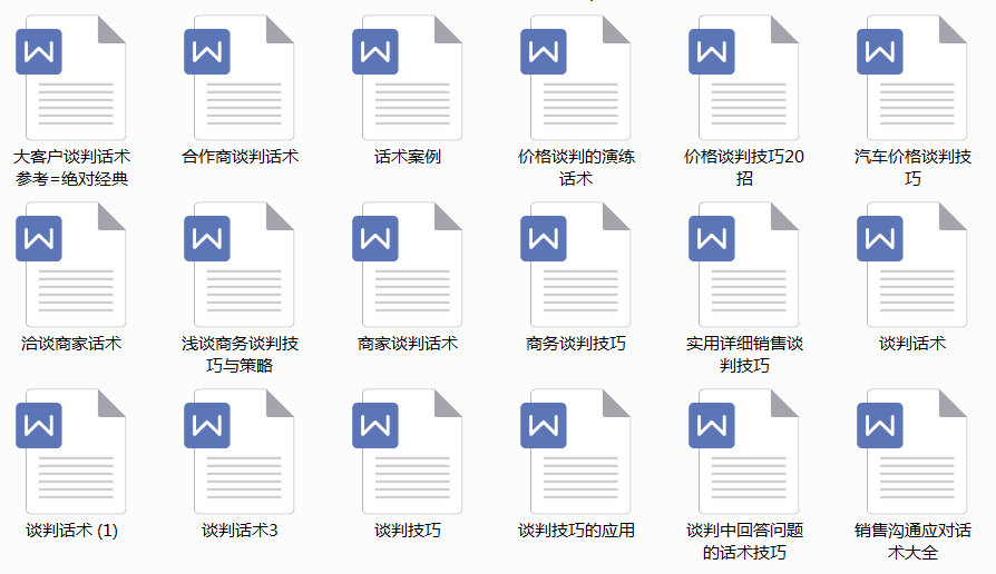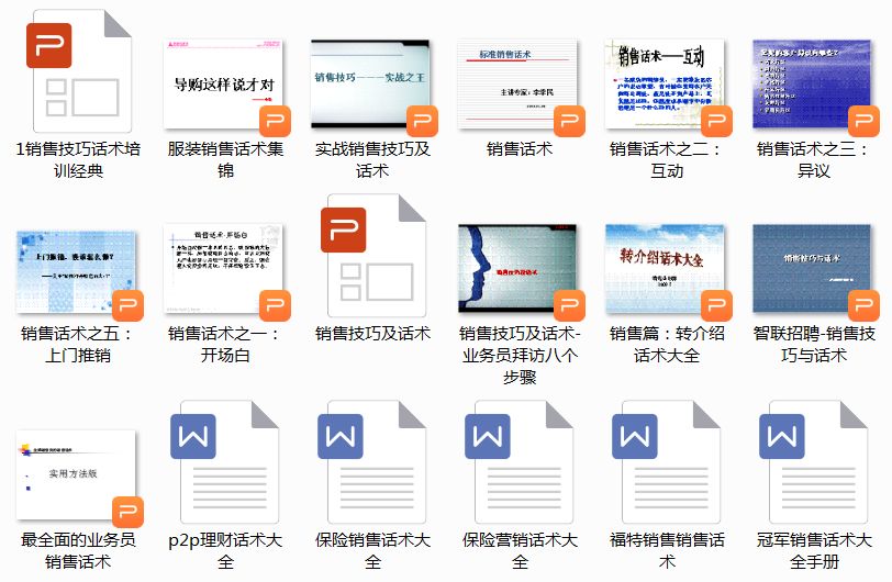 创业邦总结了一套销售必备文档,从销售基础、销售技巧、销售标准话术、销售谈判策略、销售充电书籍、销售管理、各行业销售话术等,所有关于销售必备技能应有尽有......