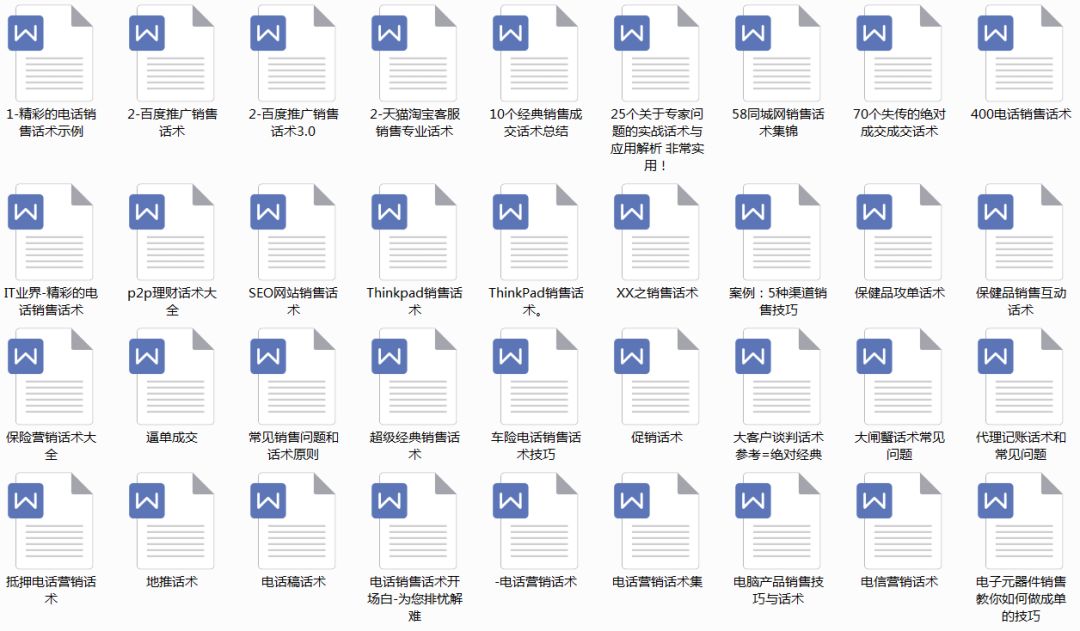 内含:天猫淘宝、百度推广、400电话销售、58同城等各大行业销售话术