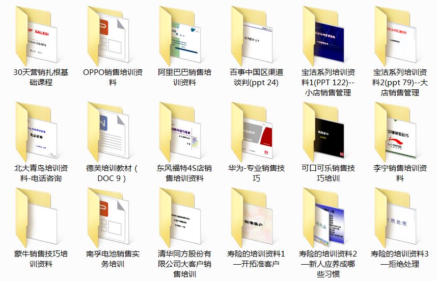 内含:阿里巴巴、华为、可口可乐、OPPO等著名企业内部培训资料