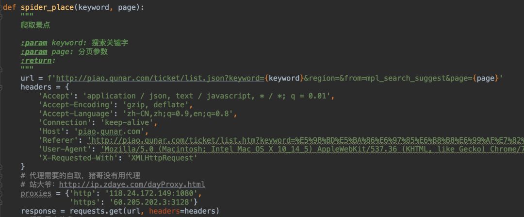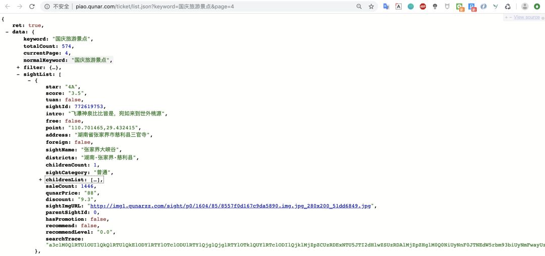 这里说下去哪儿门票页抓取数据还是很简单,不需要登录、不需要代理 、甚至不需要header也可以成功,后面批量抓取页没出现限制,相对于淘宝来说简单了许多!