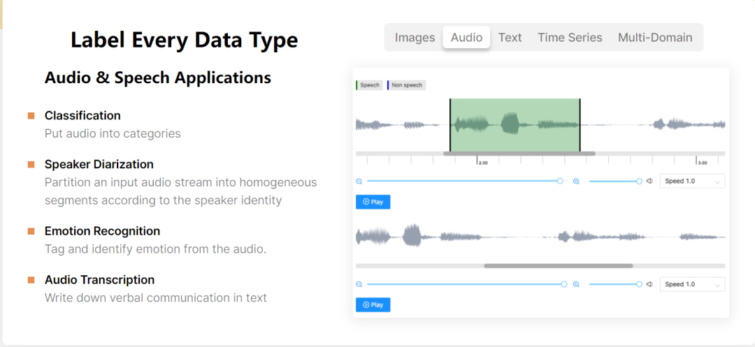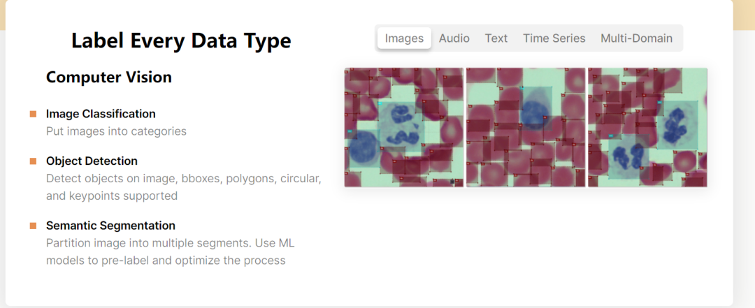 非常好用的数据标注平台,包括图像、音频、文本、时序各类格式的数据都可以标注。可以在playground里在线使用,也可以pip安装工具包。项目开源在github中。