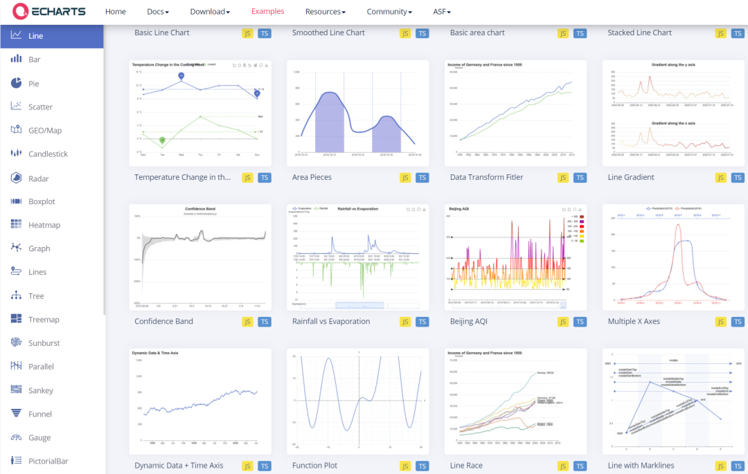 Echarts 上有超多好看的图表模板。非常适合 presentation 的时候用于展示数据结果。看好哪个模板,冲进去!把数据换成自己的,在线编译生成图表。