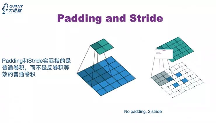 Padding和Stride实际指的是普通卷积,而不是反卷积等效的普通卷积。