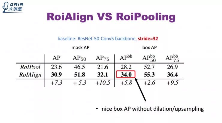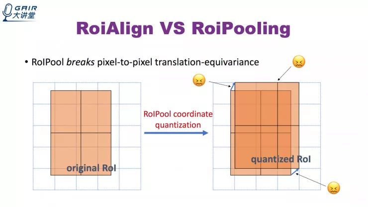 最后是RoiAlign层。能比较精确地把物体的位置对应到特征图的位置上。