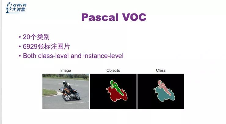 这是一个比较老牌的数据集,它提供 20 个类别,包括,人,车等。有 6929 张标注图片,提供了类别层面的标注和个体层面的标注,也就是说既可以做语义分割,只区分是不是车;也可以做个体分割,区分有几辆车,把不同的车标记出来。