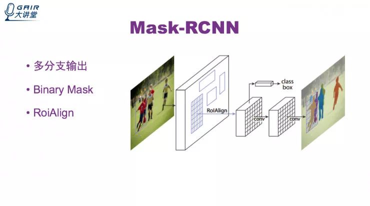 第一个特点它是多分支输出的。它同时输出物体的类别,bounding box和Mask。