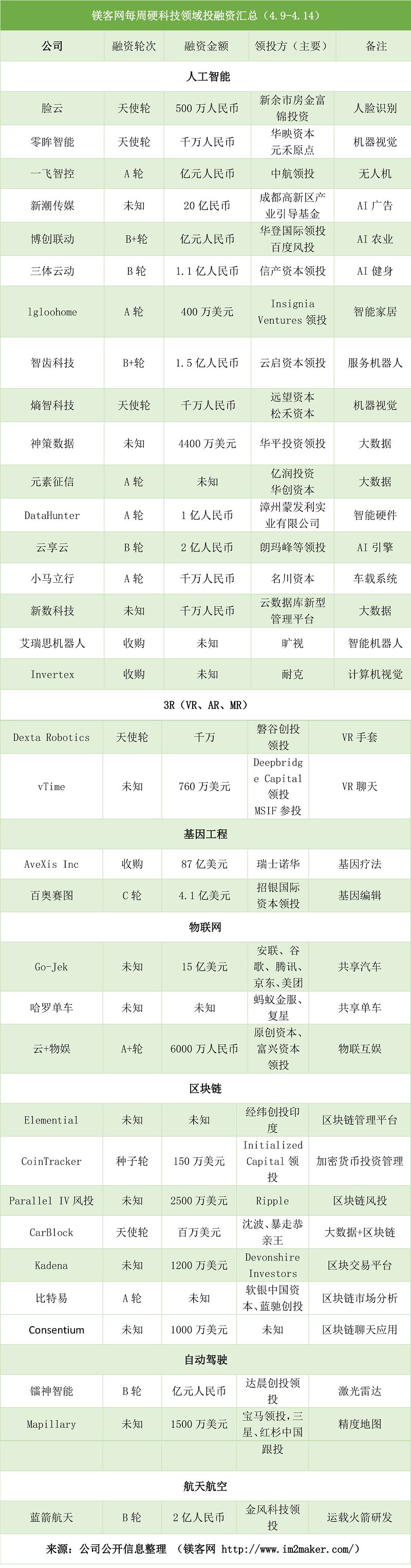 人工智能领域的投融资数量依然领跑所有的领域,其中大数据和机器视觉的融资事件最多,均是3起。同时,继上周美团收购摩拜单车后,阿里系在本周也开始行动。本周五,有消息传出哈罗单车获得新一轮上亿美元融资,具体数额未知。投资者有蚂蚁金服和复星资本等。专业人士认为这是阿里对美团收购事件的反击。