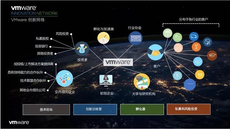 此次的AI聊最后由VMware战略合作伙伴业务总监万红向我们系统介绍了VMware创新网络,如下图所示,VMware的整个创新生态网络。