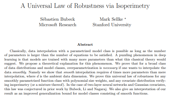 特别是在关于训练分布的某些规则性条件下,一个O(1)-Lipschitz函数插值训练数据低于标签噪声所需的参数数量以nd级数扩展,其中n是训练样本数量,d是样本数据维度。这一结果与传统的结果形成了鲜明的对比,传统的结果指出,一个函数需要n个参数来插值训练数据,而为了顺利插值,这个额外的d系数似乎是必要的。