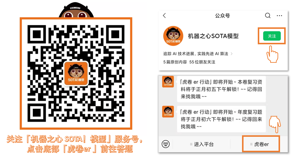 答题通道现已开启!扫描下方二维码,进入「机器之心SOTA!模型」服务号,点击菜单栏即可开始答题。