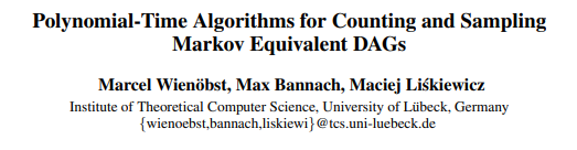 摘要:马尔可夫等效类的有向无环图的计数和采样是图因果分析中的基本任务。在本文中,我们证明了这些任务可以在多项式时间内完成,从而解决了该领域长期存在的开放性问题。我们的算法有效且易于实施。实验结果表明,该算法明显优于目前的SOTA方法。
