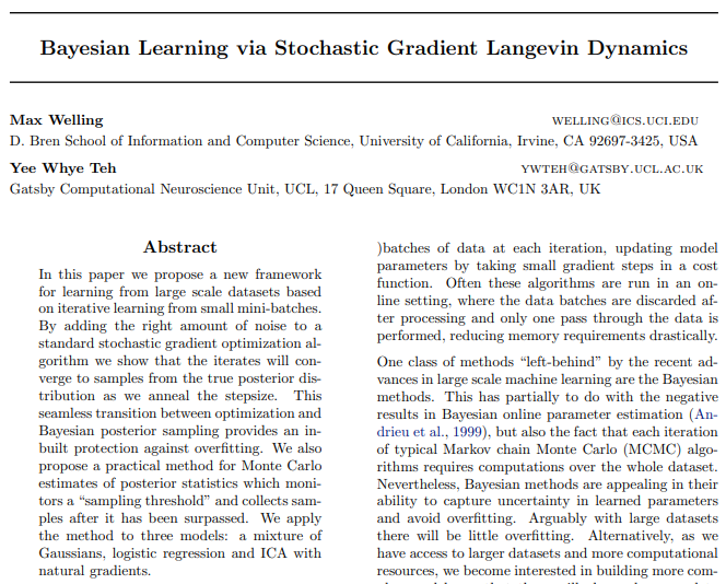 文献地址:https://www.stats.ox.ac.uk/~teh/research/compstats/WelTeh2011a.pdf