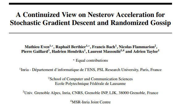 TL;DR:巴黎科学艺术人文大学、洛桑联邦理工学院提出Nesterov加速梯度方法的「连续」版本