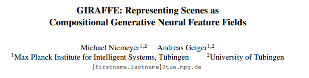 TL;DR:德国马克斯 · 普朗克智能系统研究所等提出 GIRAFFE,可在不影响背景或其他目标的情况下移动图像中的目标。该研究的关键假设是将组合 3D 场景表征结合到生成模型中,以生成更加可控的图像合成