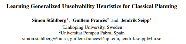 TL;DR:林雪平大学和庞培法布拉大学提出从广义规划的角度来处理经典规划问题,并学习描述整个规划领域不可解性的一阶公式。