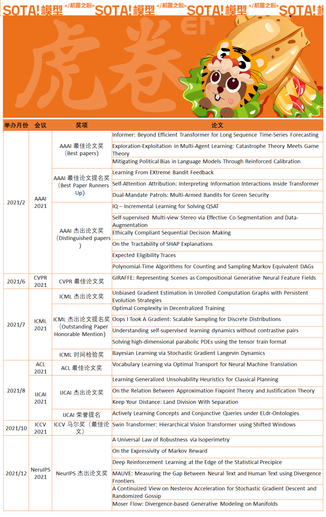 在机器之心 SOTA!模型启动「虎卷er行动」的第四天,我们解锁第三套「年度回顾」复习资料「Best Papers」,帮助老伙计们回顾在过去的2021年在国际上引起普遍反响的 AI 顶会最佳工作。