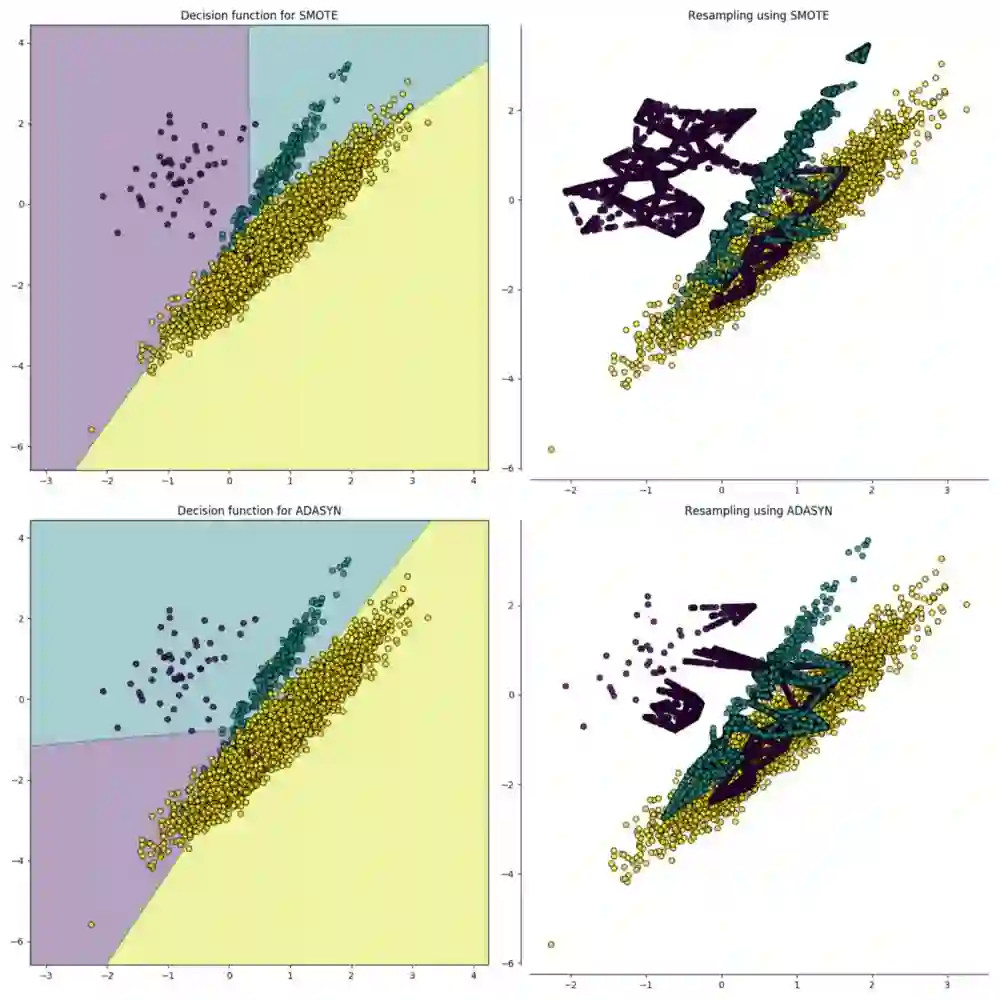 为了解决这个问题,我们可以使用imblearn库中的BalancedBaggingClassifier。它允许在训练集成分类器中每个子分类器之前对每个子数据集进行重采样。