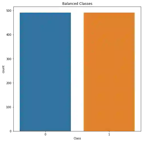 对数据集进行欠采样之后,我重新画出了类型分布图(如下),可见两个类型的数量相等。