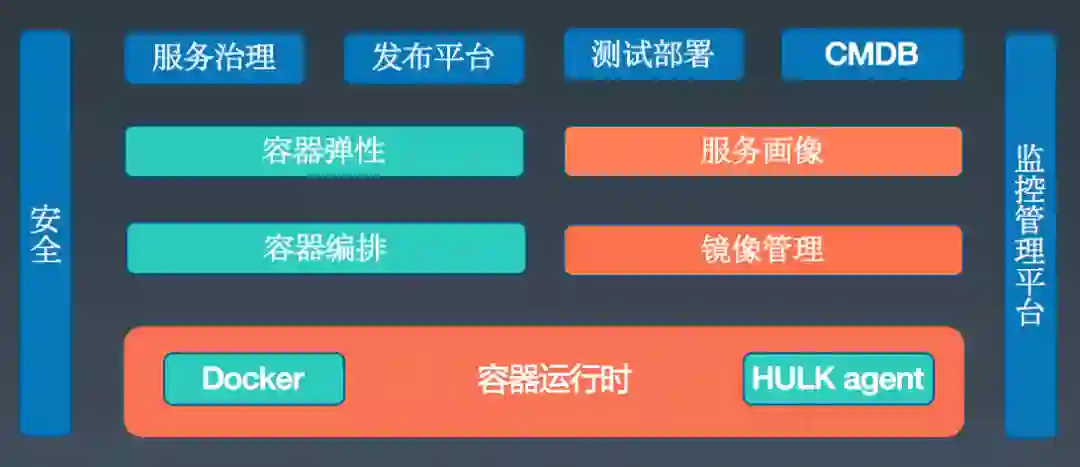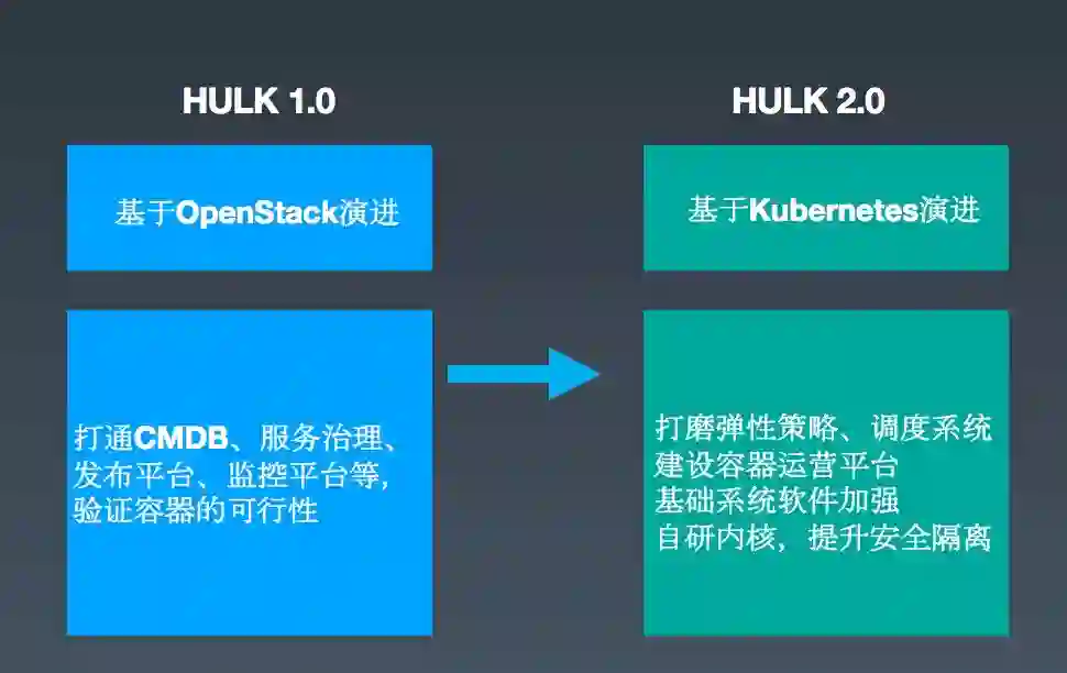 HULK平台包含容器以及弹性调度系统,容器可以统一运行环境、提升交付效率,而弹性调度可以提升业务的资源利用率。在漫威里有个叫HULK的英雄,在情绪激动的时候会变成“绿巨人”,情绪平稳后则恢复人身,这一点跟我们容器的“弹性伸缩”特性比较相像,故取名为“HULK”。