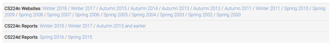 本课程于2017开始开设,是之前CS224n(自然语言处理)和CS224d(自然语言处理与深度学习)课程的合并,官网上有过去几年相关课程的官网链接和学生项目报告,可供参考。