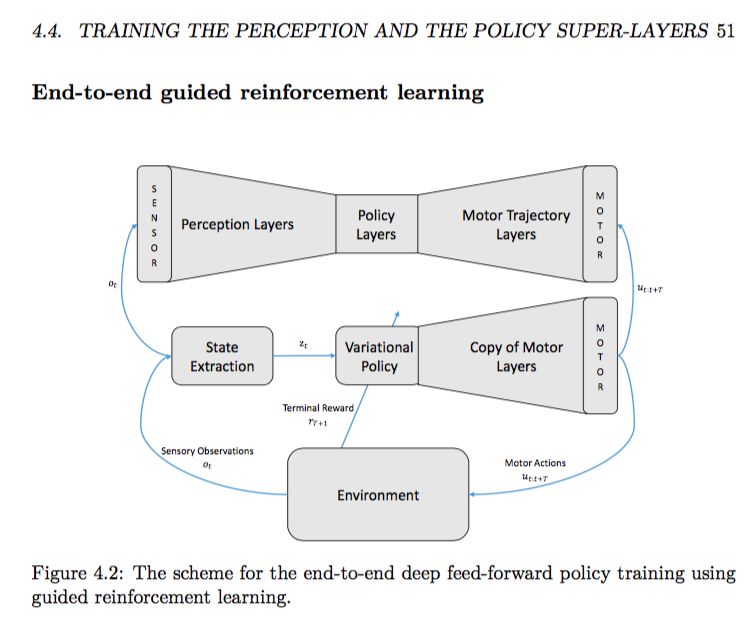 We proposed to divide the deep network into three blocks (super-layers) as perception, policy and behavior super-layers and either train each block individually (paper (E)) or the whole network, end-to-end, by the use of the expectation-maximization method (paper (F)).