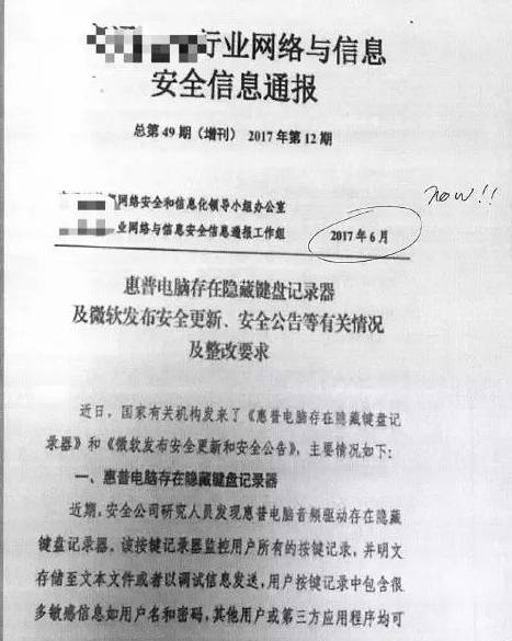 据笔者所知,不少公务员也在用着惠普的PC设备,此次惠普预装流氓软件事件显然没有引起公务员群体和当局的重视,信息隐患细思恐极。不过,笔者了解到,近期某部委下属网络安全和信息化领导小组办公室已经发布公告通报了惠普电脑存在隐藏键盘记录器问题。