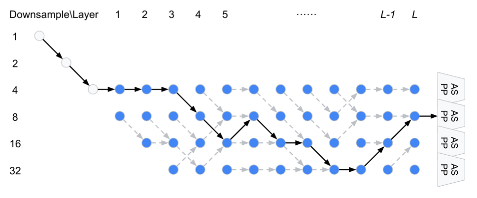 图注:AutoDeepLab发现的一种架构。图片来源:Liu et. al