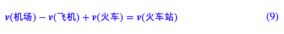 既然是线性运算,我们就可以移项得到“机场+火车=火车站+飞机”。现在我们来思考一下,单从语义角度来理解,这个等式究竟表达了什么?
