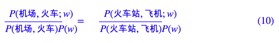 文章开头已经提到,词向量模型的假设基本都是用上下文的分布来推导词义,既然“机场+火车=火车站+飞机”,那么很显然就是说,“机场”与“火车”它们的共同的上下文,跟“火车站”与“飞机”的共同的上下文,两者基本是一样的。