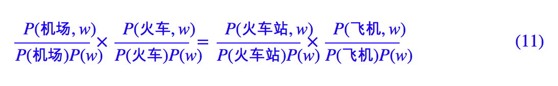 因为词与词的相关程度用相关度来描述,所以如果“机场+火车=火车站+飞机”,那么我们会有: