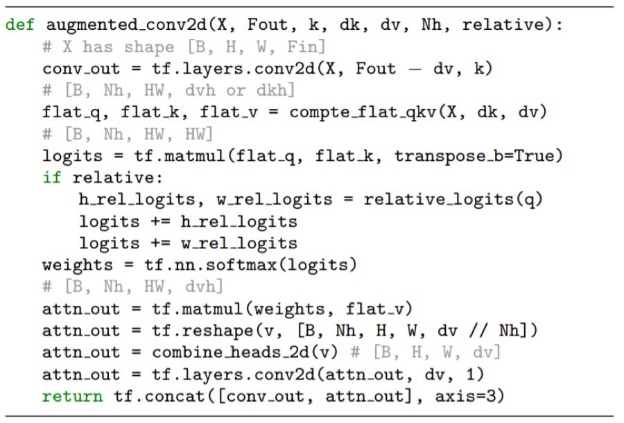 AA-Wide-ResNet 版本:https://github.com/leaderj1001/Attention-Augmented-Conv2d/blob/master/AA-Wide-ResNet/attention_augmented_conv.py