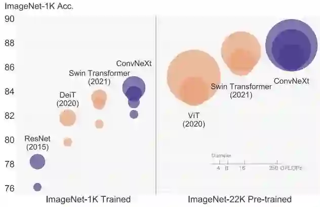 “文艺复兴”,ConvNet卷土重来,压过Transformer。本文是FAIR的Zhuang Liu(DenseNet的作者)与Saining Xie(ResNeXt的作者)关于ConvNet的最新探索,以ResNet为出发点,逐步引入近来ViT架构的一些设计理念而得到的纯ConvNet新架构ConvNeXt,取得了优于SwinT的性能,让ConvNet再次性能焕发。