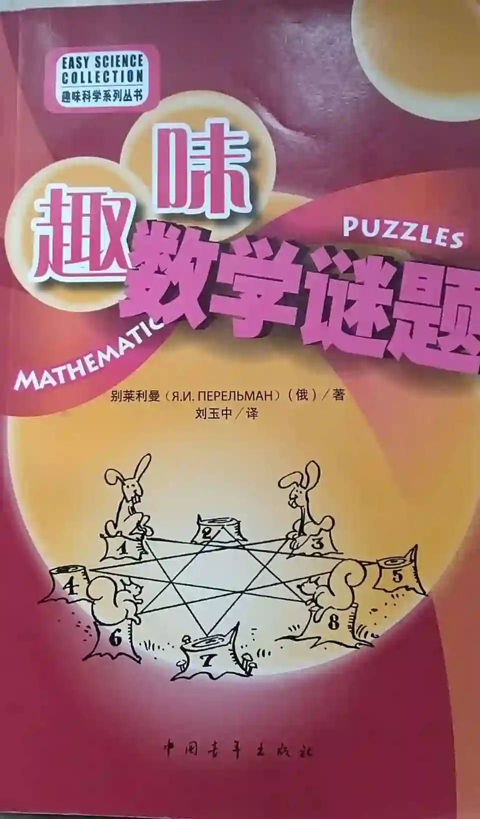 这三本《数学奥妙》《莫斯科智力游戏》 《趣味数学谜题》都是享誉全球的数学趣味书,很能体现俄罗斯趣味数学的风格。书中有许多趣味题,比如各种火柴,棋子移动问题,著名的狼,山羊,白菜问题,幻方问题,连线问题。。。。看这本书并不需要多少知识,所以大部分题也适合小学生看,里面许多问题都有挑战性,大人可以和小孩一起挑战。我手头的《趣味数学谜题》是中国青年出版社出版,另外江西教育出版社出了新的版本,但我没看新版的书。这三本趣味书有两个小缺点:1,里面的有些图比较小;2,有不少问题可能是直译过来的,但意思并没有表达清楚,很多读者可能看不懂这些问题。希望以后出版社再出版这些书的时候可以留意一下这些问题
