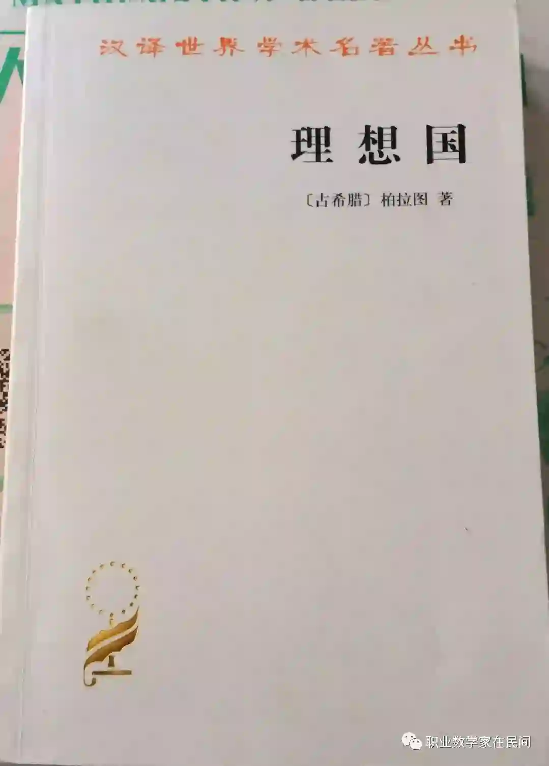 很多人可能会认为柏拉图的《理想国》并不是一本数学书而是哲学书。如果只让我给中小学生推荐一本哲学书的话,我肯定会推荐《理想国》。我认为哲学和数学,“行深般若波罗蜜多时”,理应贯通。但这远远不是我推荐这本书的全部理由。人们常常问这样一个问题:为什么现代数学发源于西方而不是东方?我认为部分答案可以在《理想国》中找到,尤其是里面论述理念的章节。从某种意义上来说,数学就是理念的学科,而2000多年来西方数学(还有哲学)的发展就是在为《理想国》中的理念做诠释。