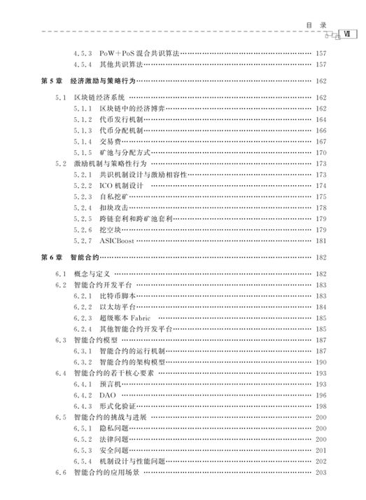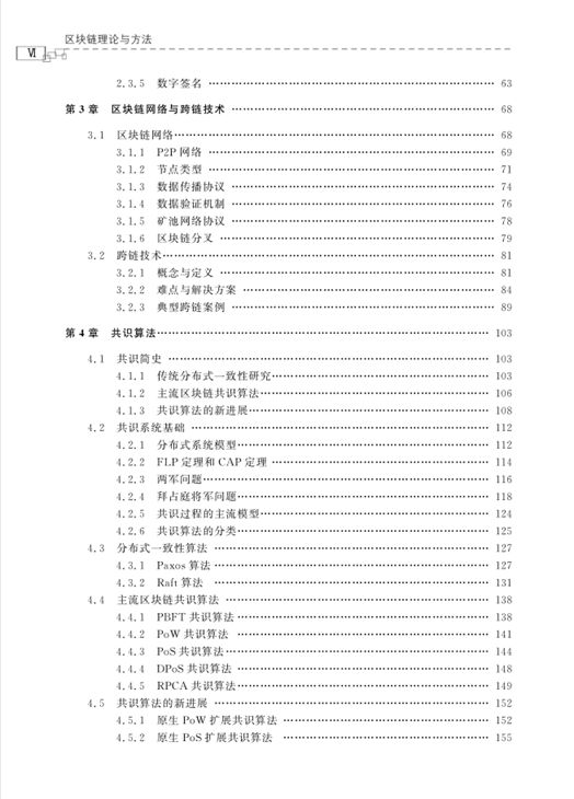 就是基于上面的认识,我们组织专门队伍开展了区块链技术的研究和应用,并撰写了这本《区块链理论与方法》,力图系统和深入地介绍区块链的基础理论和关键方法,目的是推动区块链的教学、研究和应用。本书以区块链“六层”基础架构模型为主线,内容涵盖区块链的数据结构、P2P网络、跨链互操作、共识算法、经济激励、智能合约、扩容技术、安全与隐私保护、数字货币及分布式账本等。第1章概述;第2章介绍区块链的链式数据结构,并阐述时间戳、哈希函数、默克尔树、非对称加密和数字签名等关键技术;第3章讨论区块链底层的网络结构与通信协议,以及实现多条区块链之间互联互通的跨链技术;第4章介绍区块链共识算法的分布式计算理论基础,并简要概述区块链发展历程中出现的各类共识算法;第5章从经济和管理学的视角,探讨区块链生态系统的经济模型、激励机制及参与者的各类策略性行为;第6章给出智能合约的概念、模型与核心要素,并探讨智能合约面临的挑战和适用的场景;第7章阐述区块链扩容的关键技术、制约因素和衍生问题;第8章探讨区块链安全与隐私保护的理论和方法;第9章主要介绍数字货币的相关技术;第10章介绍以有向无环图DAG为基础结构的分布式账本,并给出典型的应用案例。