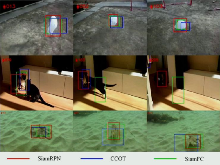 训练过程中,算法可以利用密集标注(VID)和稀疏标注(YoutubeBB)的数据集对进行训练。相比于现有方法,稀疏标注的数据集大大增加了训练数据来源,从而可以对深度神经网络进行更充分的训练;Region Proposal Network 中的坐标回归可以让跟踪框更加准确,并且省去多尺度测试耗费的时间。