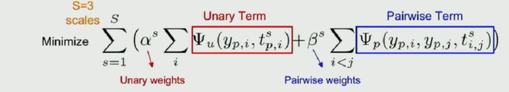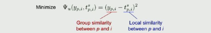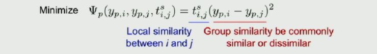 如果记 I_p 和 I_i 之间的组相似性为 y_pi。那么基于组相似性的 CRF 模型即为: