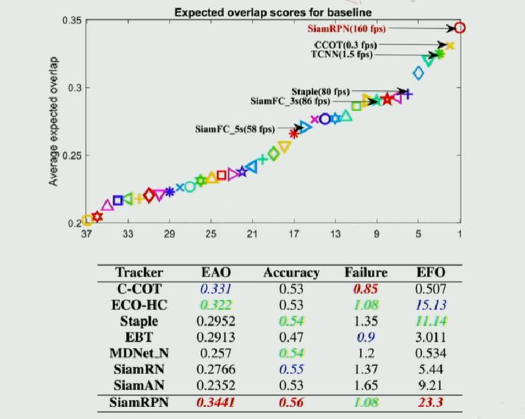最后由来自商汤科技的武伟博士介绍了他们在目标追踪方面的工作。基于实际安防监控工作的需要,他们设计了一个利用孪生(Siamese)网络和区域候选网络(Region Proposal Network)构建的高速且高性能的单目标跟踪算法。该算法在 VOT 2016 和 VOT 2017 数据集上都取得了 state-of-art 的结果。