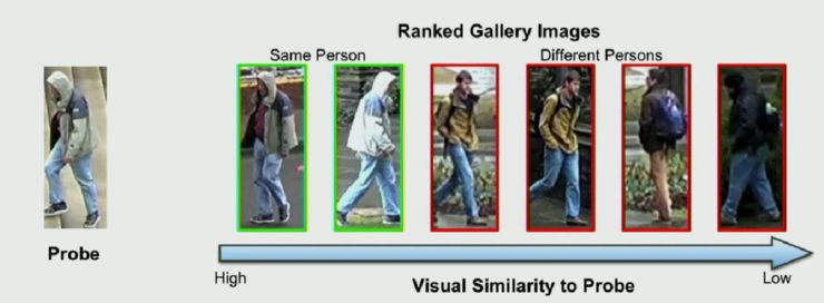 所谓行人重识别,按照李鸿升教授的说法,即给定一个检测图片,依据相似性对图片集中的所有行人图片进行排序。这其中的关键问题是,如何学习行人图片之间的视觉相似性。