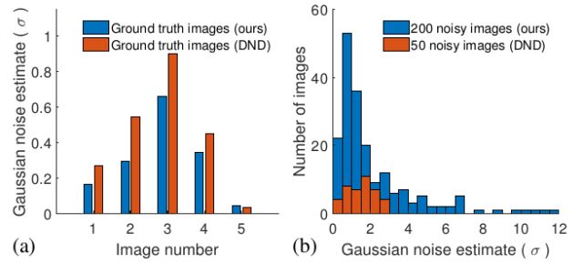 图4:对比了本文数据集与DND数据集的结果,可以发现本文的数据集在真实数据集上具有更低的噪声。