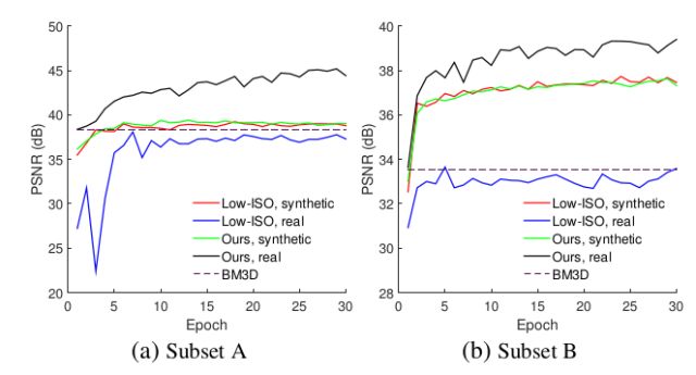 本文在SIDD上测试了一些降噪算法,并得到了一些结论。同时,本文也发现利用SIDD数据集训练的基于CNN的降噪模型能够比用低ISO数据集训练的模型具有更好的降噪效果。