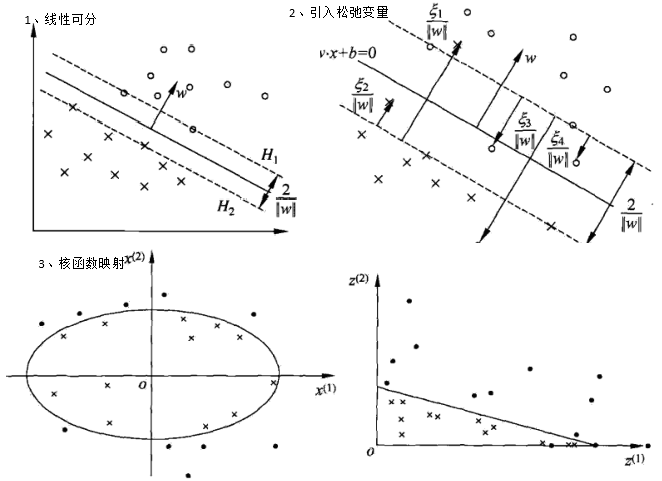 支持向量机(svm)通过寻找一个超平面来对样本进行分割,分割的原则是间隔最大化,最终转化为一个凸二次规划问题来求解。通常有三种情况: