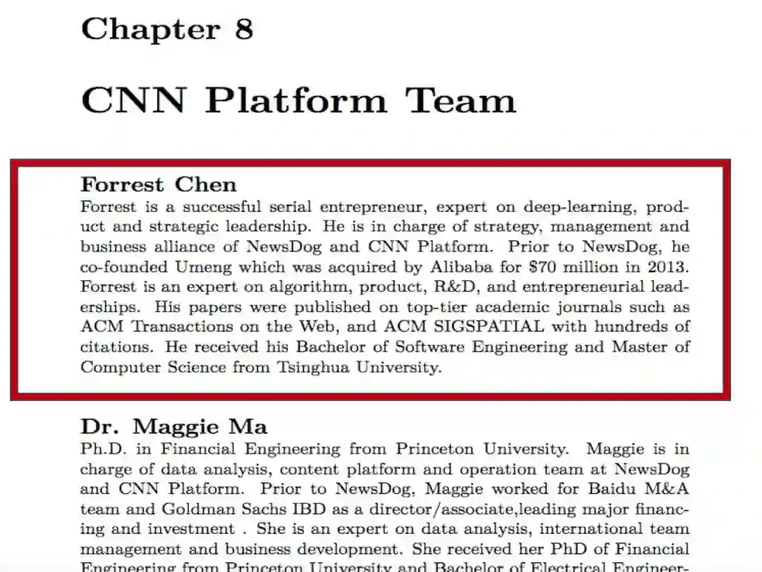 CNN白皮书显示,项目实际人为Forrest Chen(陈彧堃),即NewsDog创始人。