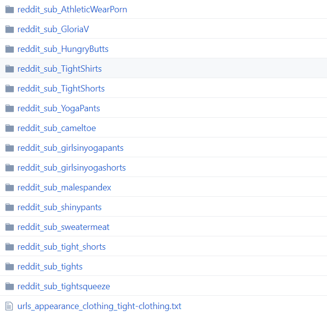 整个项目和 nsfw_data_scrapper 项目一样提供对应的图像超链,不同类别及子类别都有对应的 TXT 文件,所有超链都储存在 TXT 文本中。如下所示为简单的数据示例,因为本文这个数据集尺度有点大,我们以 nsfw_data_scrapper 数据集为例: