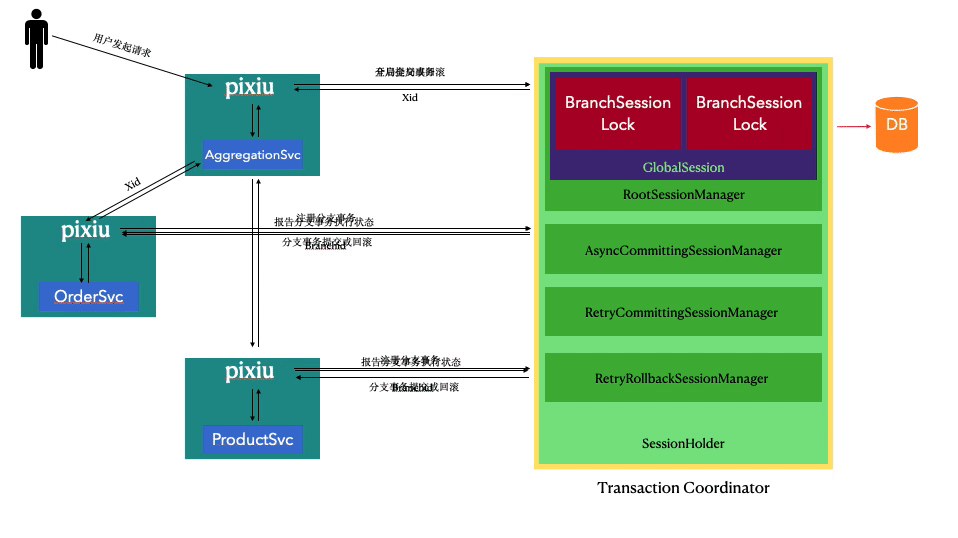两个社区现已合作将 TCC 模式 seata-golang 集成到了 dubbo-go-pixiu 中,只需要简单的配置、就能集成 TCC 模式协调分布式事务的方案,整体流程原理见上图。为了进一步降低大家使用分布式事务的门槛,seata-golang 社区也在考虑将 AT 模式做到 DB 代理层,届时在 dubbo-go-pixiu 中使用 seata-golang 会更加方便,敬请期待。