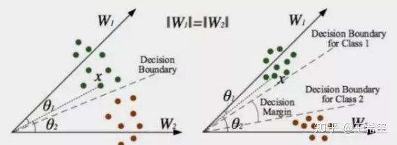 如下图所示,A-softmax存在一个问题,它的决策边界会随着 的变化而变化,当