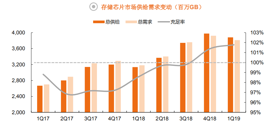 存储芯片供给主要集中在三星、海力士和美光三家厂商,产能的扩张需要一年以上的时间,难以在短期提高,也因此导致存储芯片供给弹性较低。