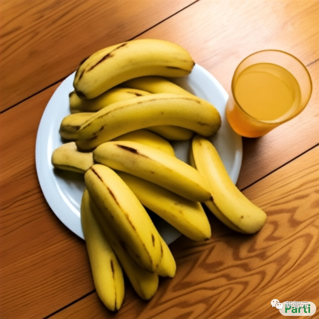 然而,生成的图片中盘子里全是香蕉,玻璃杯里也几乎盛满了橙汁!