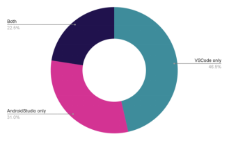 图:大约 23% 的 Flutter 开发人员在同时使用 VS Code 和 Android Studio